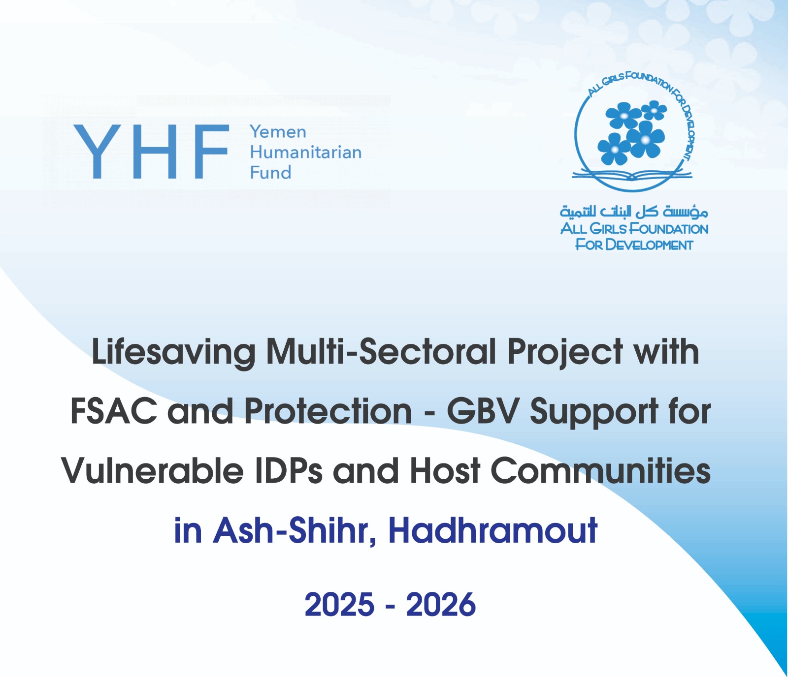 Since the launch of the Food Security, Agriculture, and Protection Project for Internally Displaced Persons (IDPs) and Host Communities in July 2025, funded by the Yemen Humanitarian Fund (YHF), All Girls Foundation for Development (AGF) has continued delivering an integrated package of humanitarian services targeting the most vulnerable groups in Al-Shahr district, Hadramout. The interventions focus on protection services, psychosocial support, case management, livelihood support, and community awareness.
