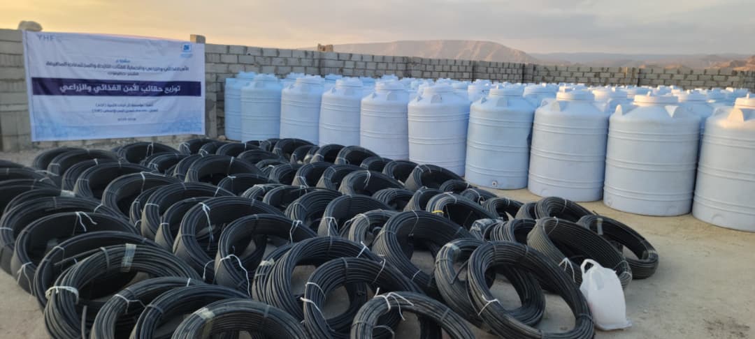 As part of the first phase of distributing food and agricultural security kits in Hadramout Governorate, All Girls Foundation for Development (AGF) distributed water tanks, irrigation networks, and agricultural tools to 65 beneficiaries from vulnerable groups in the local community in Al-Shihr District.